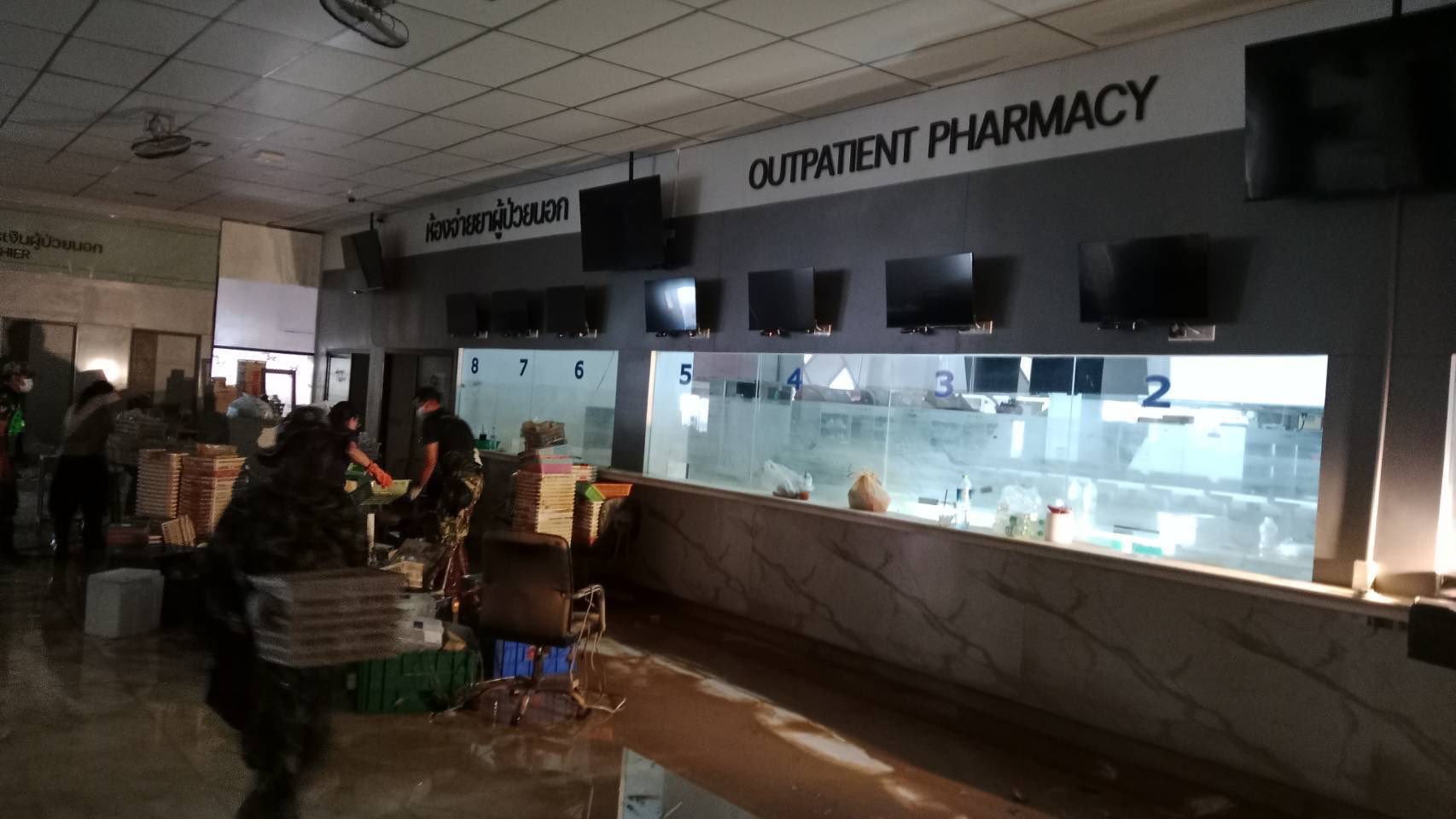 De schade aan het ziekenhuis wordt geschat op 1 miljard baht. Zijne Koninklijke Majesteit de Koning heeft 100 miljoen baht toegekend ter ondersteuning van dringende reparaties, waaronder water, elektriciteit, afvalverwerkingssystemen en medische apparatuur.